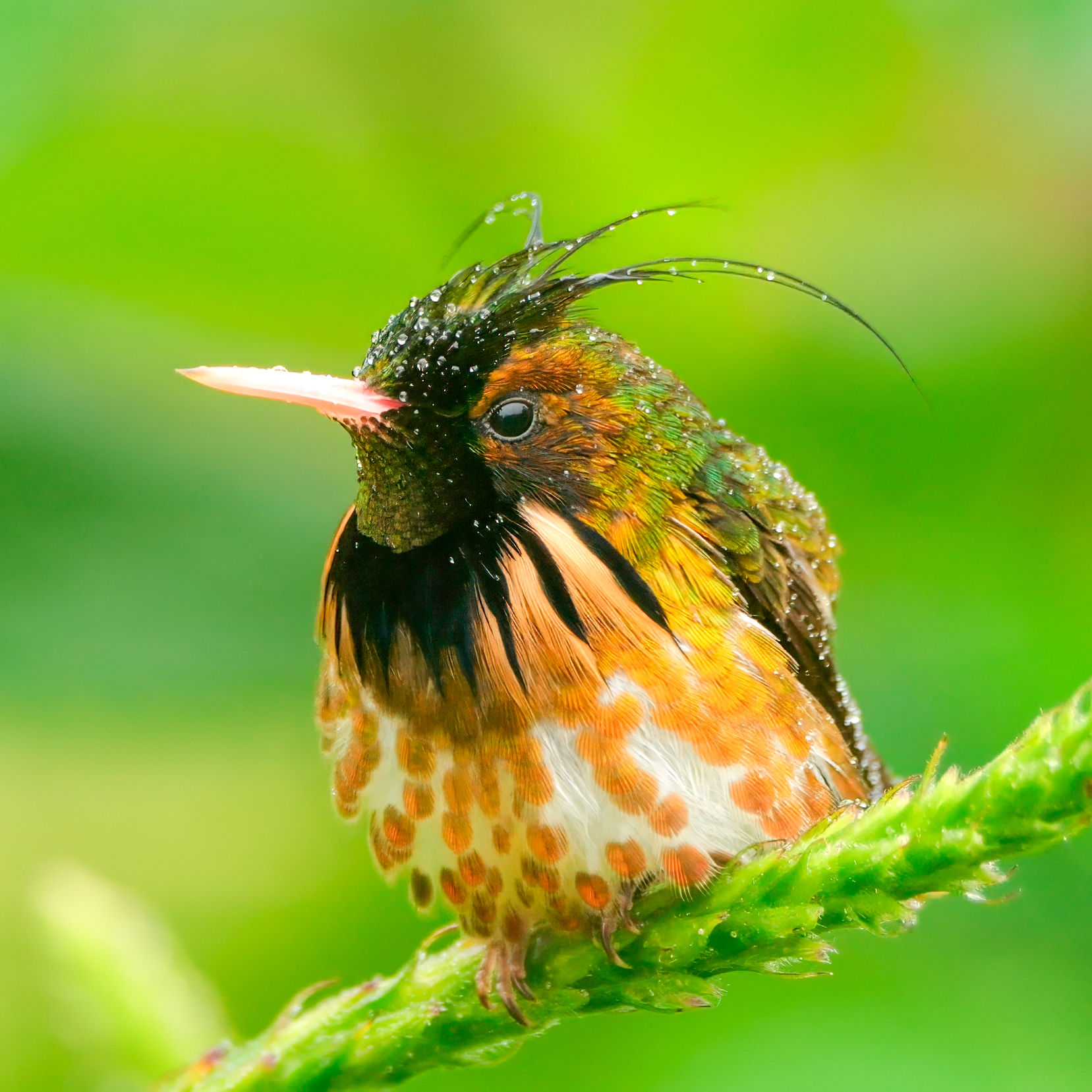 This small hummingbird is constrained to the Caribbean slope of Costa Rica, and it's very sensitive to habitat quality. Much of the historical habitat of this bird has been lost to logging or agriculture, and there are just a few spots where this bird thrives.